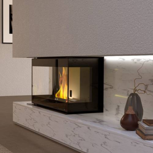 Vista fuoco a 180° con focolare a pianta rettangolare.