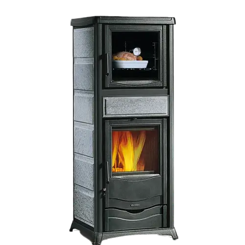 caratteristiche:• Focolare in ghisa • Porte in acciaio smaltato • Facciata e telaio in ghisa smaltata • Piastra e cerchi in ghisa levigata • Cassetto cenere estraibile • Sistema di post-combustione per basse emissioni • Porta fuoco con doppio vetro, interno ceramico • Porta forno con doppio vetro • Forno in acciaio smaltato porcellanato da 28 l • Cassettone porta legna • Uscita fumi superiore lato destro • Piedini per agevolare pulizia • Padella forno smaltata (1 pz) di serie