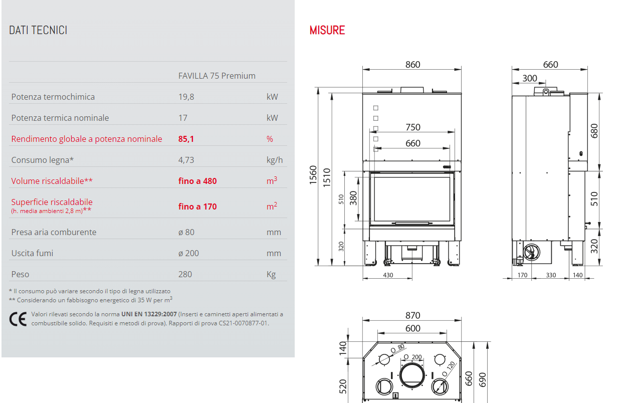 Favilla 75 Premium è il termocamino a legna con Certificazione 5 Stelle funzionale ed economico: