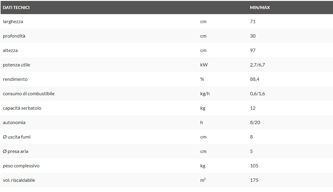 Stufa a pellet stagna “salvaspazio” con soli 30 cm di profondità, ideale per il corridoio ma adatta ad ogni ambiente della casa, con porta e inserti frontali in acciaio.