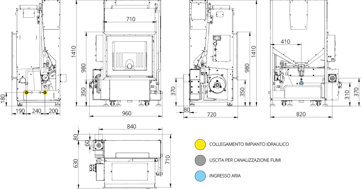 Il carico del pellet può avvenire nei due lati o posteriormente e tutte le parti sono facilmente ispezionabili.